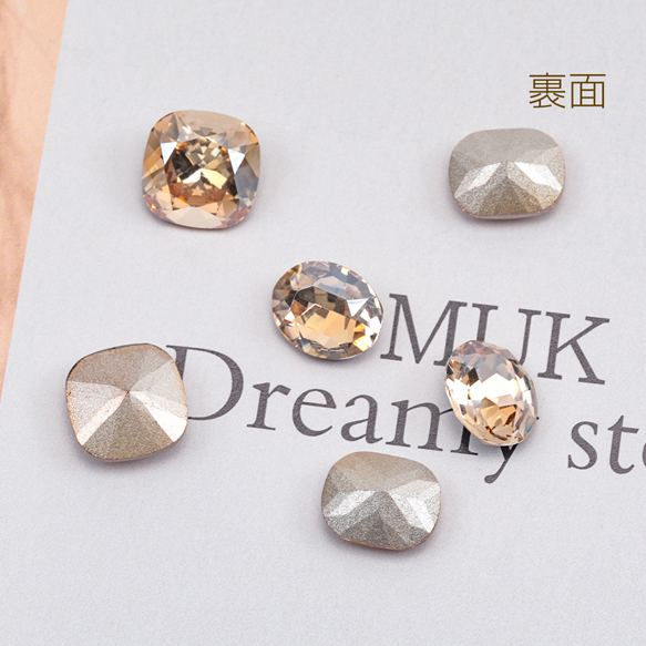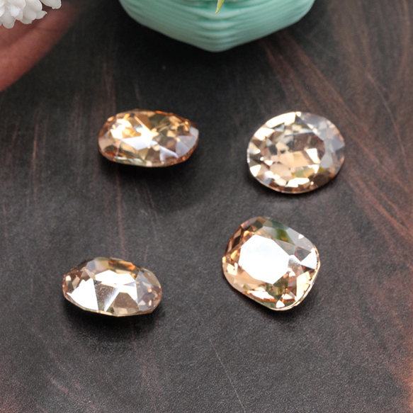 ガラスストーン シャンパンカラー キラキラ 穴なし 立体 Vカット ビジュー 貼り付け ガラスパーツ 全3種(4ヶ)
