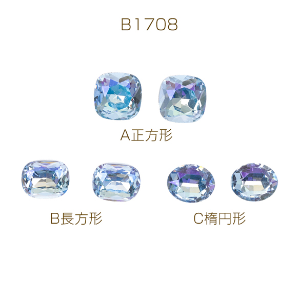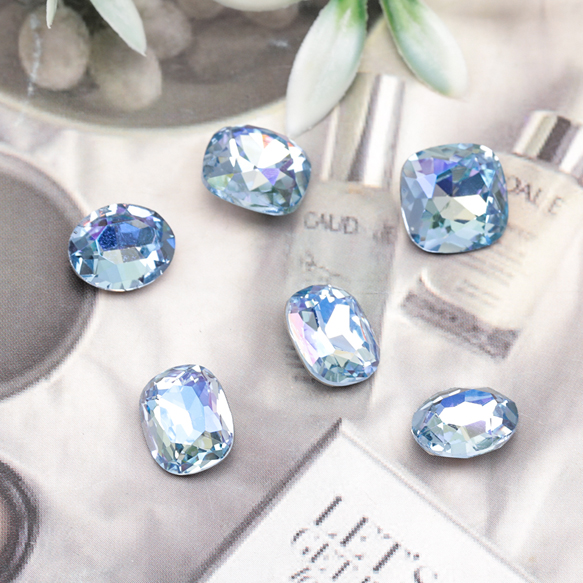 ガラスストーン ブルーカラー キラキラ 穴なし 立体 Vカット ビジュー 貼り付け ガラスパーツ 全3種(2ヶ)