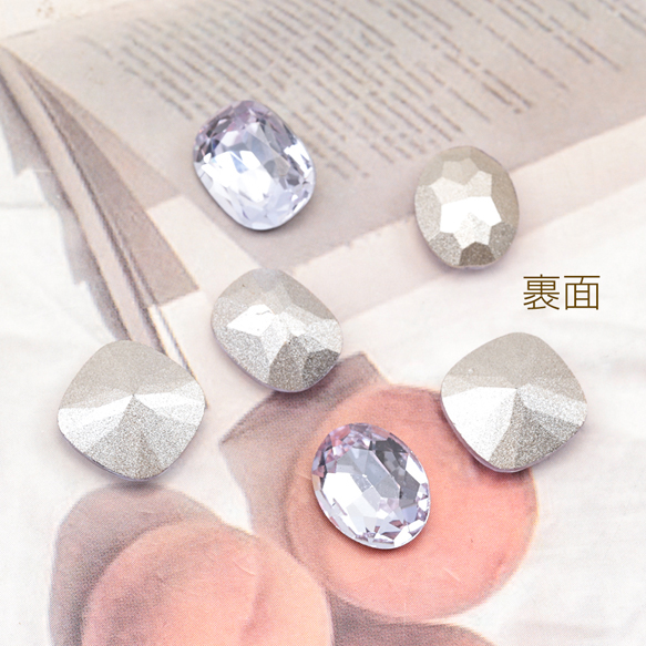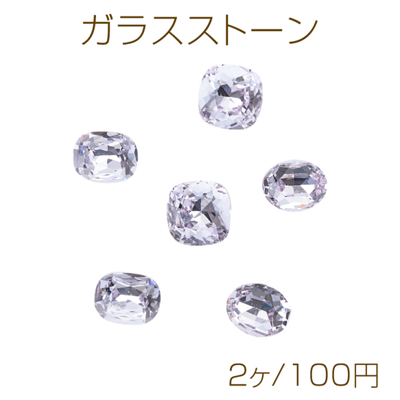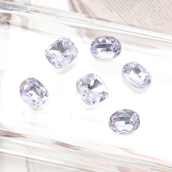 ガラスストーン ラベンダーカラー キラキラ 穴なし 立体 Vカット ビジュー 貼り付け ガラスパーツ 全3種(2ヶ)