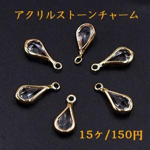 アクリルストーンチャーム 雫 1カン 6×14mm ゴールド/クリア【15ヶ】