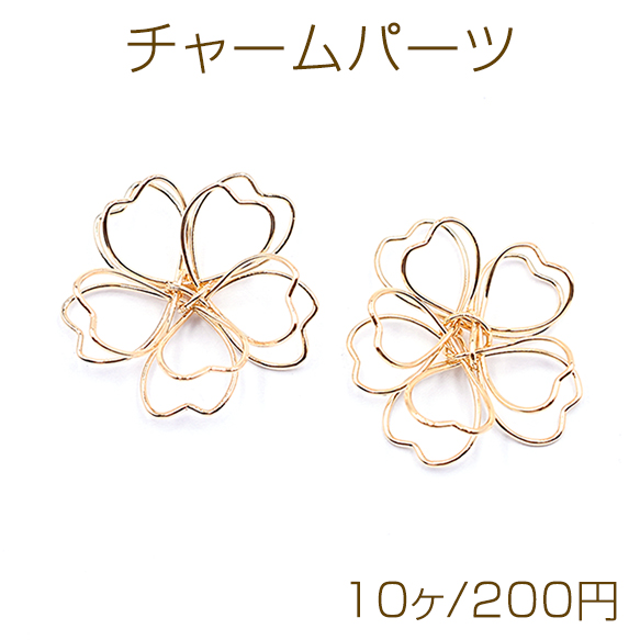 チャームパーツ 桜の立体ワイヤーチャーム お花の立体ワイヤーチャーム フラワーワイヤーパーツ 25×26mm ゴールド【10ヶ】