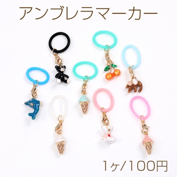 アンブレラマーカー 傘マーカー ペットボトルマーカー シリコンマーカー 可愛い立体メタルチャーム付き(シリコンリング直径1.5cm)