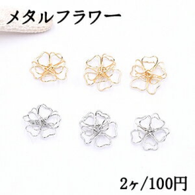 メタルフラワー 五弁花 14×15mm フラワーワイヤーチャーム お花の立体ワイヤーチャーム フラワーワイヤーパーツ チャームパーツ【2ヶ】
