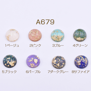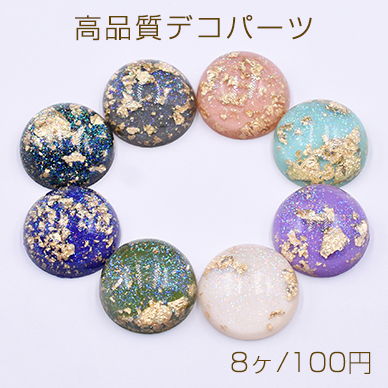 高品質デコパーツ 樹脂パーツ 半円 20mm 金箔&パウダー入り【8ヶ】