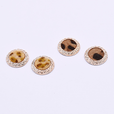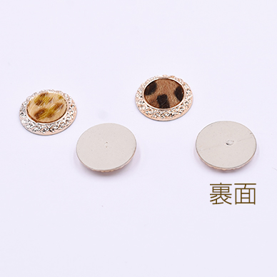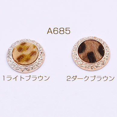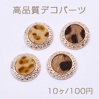 高品質デコパーツ アクリルパーツ 丸型 ヒョウ柄 18mm ファー付き【10ヶ】