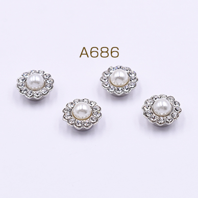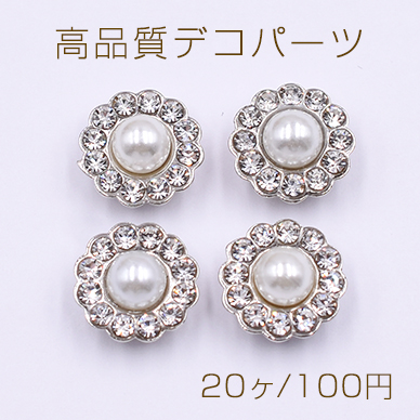高品質デコパーツ アクリルパーツ 花形 10mm パールと石付き【20ヶ】