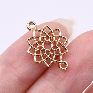 チャームパーツ 透かしフラワー 2カン付き 14×20mm ゴールド【15ヶ】