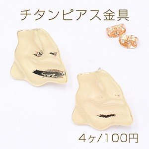 チタンピアス金具 不規則 カン付き 20×20mm ゴールド【4ヶ】