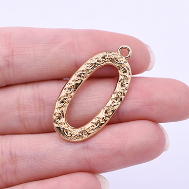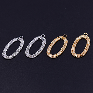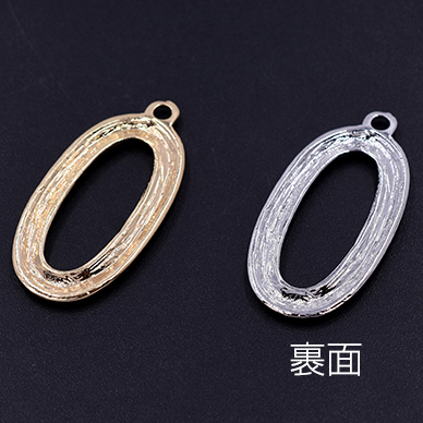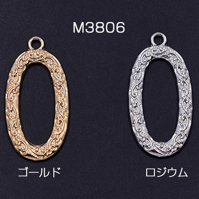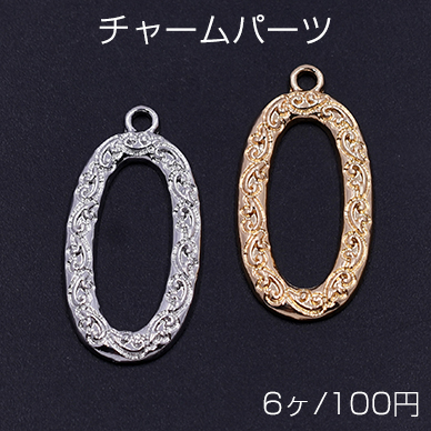 チャームパーツ 抜きオーバル 17×33mm カン付き 花模様入り【6ヶ】