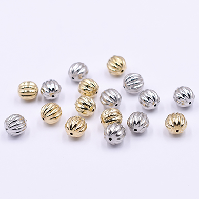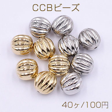 CCBビーズ 樹脂製 CCBメタル調ビーズ 軽量ビーズ スペーサービーズ 筋入りカボチャ 穴あり 10mm (40ヶ)