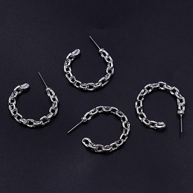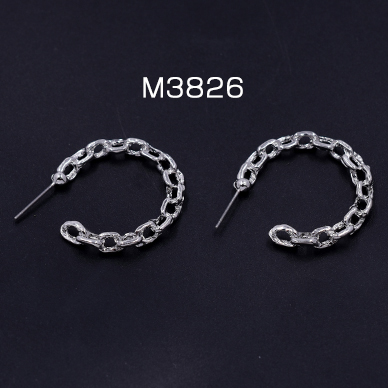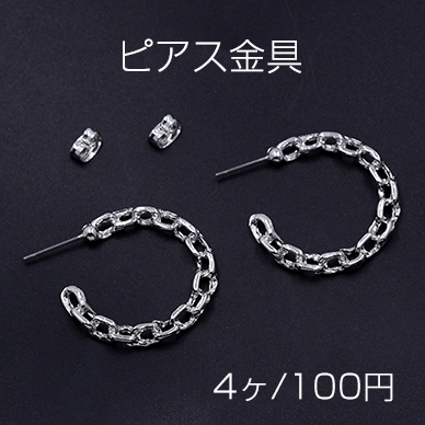 ピアス金具 チェーンフープ 26×30mm ロジウム【4ヶ】