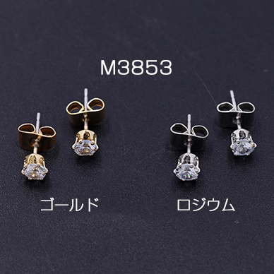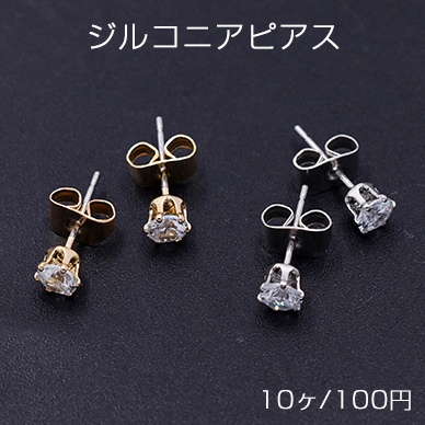 ジルコニアピアス ラウンドカット 4×4mm ゴールド【10ヶ】