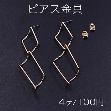 ピアス金具 2連変形フープ 20×58mm ゴールド【4ヶ】