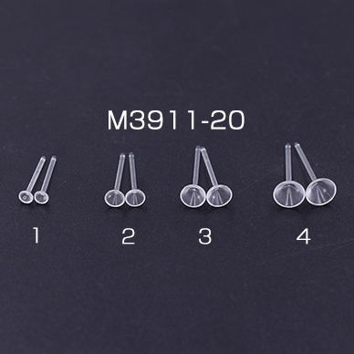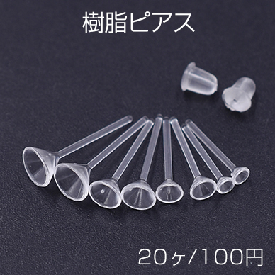 樹脂ピアス 石座付き 4サイズ クリア 20個入
