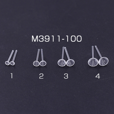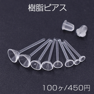 樹脂ピアス 石座付き 4サイズ クリア 100個入