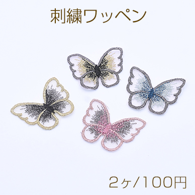 刺繍ワッペン 胡蝶C 4×5cm 全4色【2ヶ】