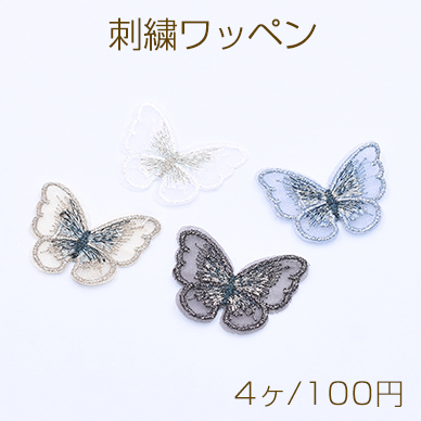 刺繍ワッペン 胡蝶E 3×4cm 全4色【4ヶ】