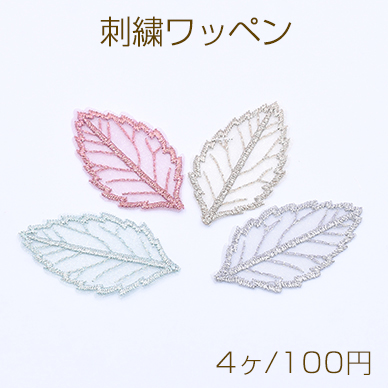 刺繍ワッペン リーフ 3×5cm 全4色【4ヶ】