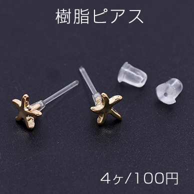 樹脂ピアス ヒトデ 6×6mm クリア/ゴールド【4ヶ】