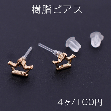 樹脂ピアス 王冠 6×8mm クリア/ゴールド【4ヶ】