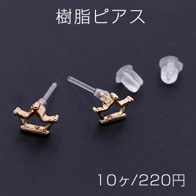 樹脂ピアス 王冠 6×8mm クリア/ゴールド【10ヶ】