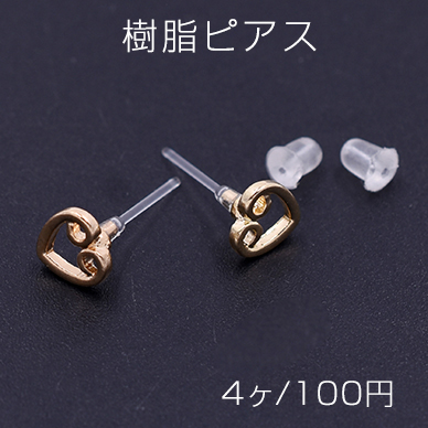 樹脂ピアス ハート 7×7mm クリア/ゴールド【4ヶ】