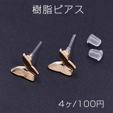 樹脂ピアス 蝶 8×9mm クリア/ゴールド【4ヶ】