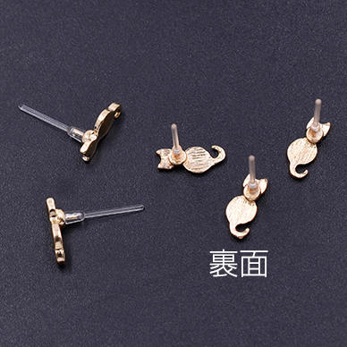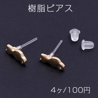 樹脂ピアス 猫 5×10mm クリア/ゴールド【4ヶ】