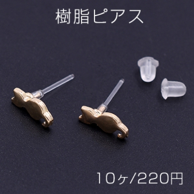 樹脂ピアス 猫 5×10mm クリア/ゴールド【10ヶ】