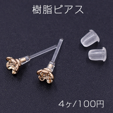 樹脂ピアス 五弁花 5×5mm クリア/ゴールド【4ヶ】