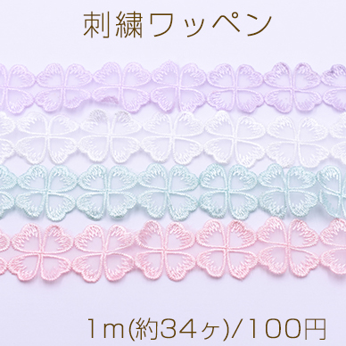 刺繍ワッペン クローバー 30×30mm 全4色【1m(約34ヶ)】