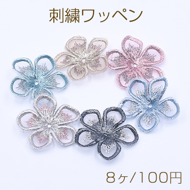 刺繍ワッペン 5弁花 花びら 40×40mm 全6色【8ヶ】