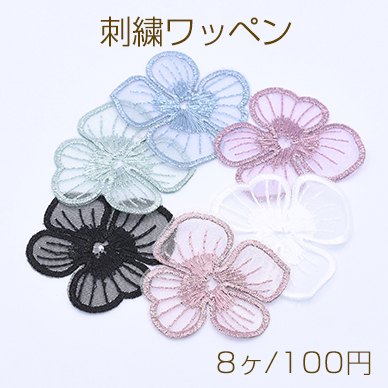 刺繍ワッペン 4弁花 花びら 50×50mm 全6色【8ヶ】