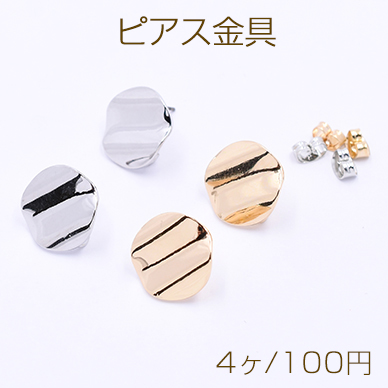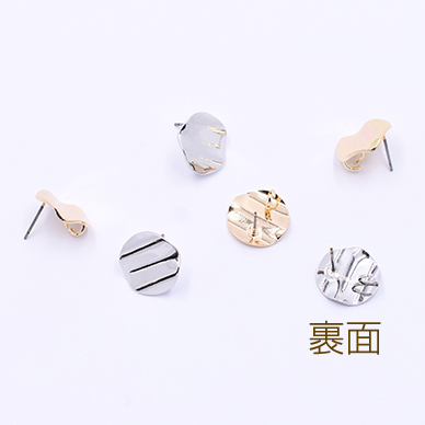 ピアス金具 波型模様入り丸型 カン付き 16mm【4ヶ】