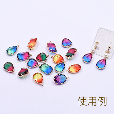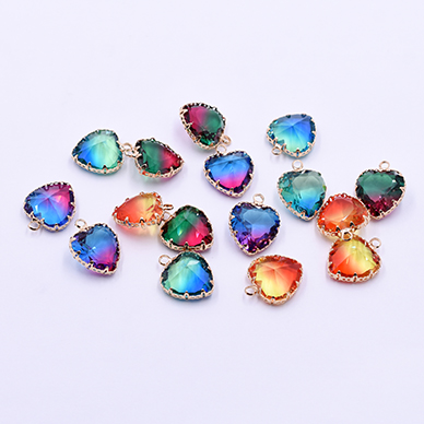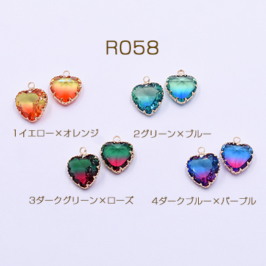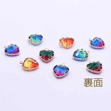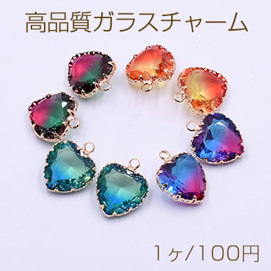 上質フレームガラスチャーム メタルフレームガラスチャーム 爪付きガラスチャーム グラデーションカラー ハート型 1カン付き 16×19mm(1ヶ)