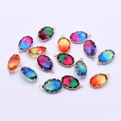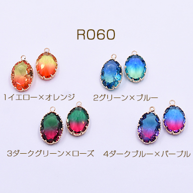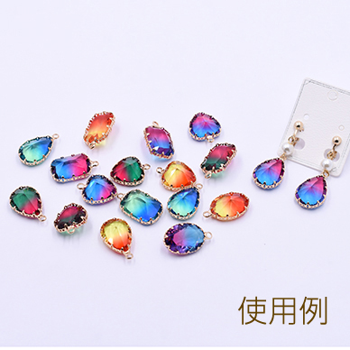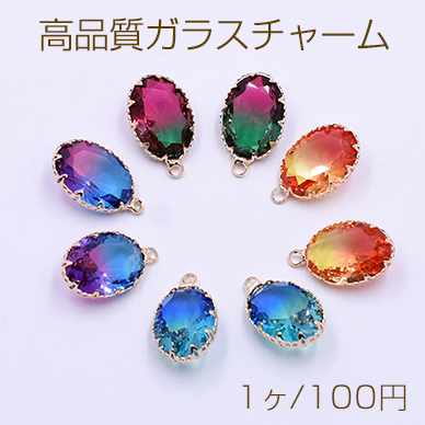 上質フレームガラスチャーム メタルフレームガラスチャーム 爪付きガラスチャーム グラデーションカラーオーバル型 1カン付き 14×23mm(1ヶ)