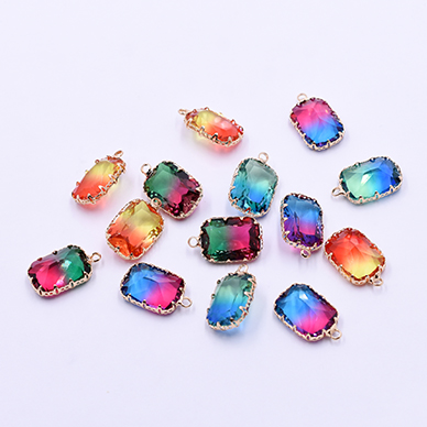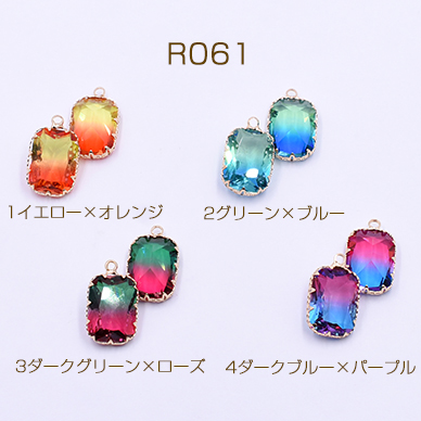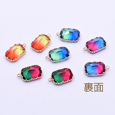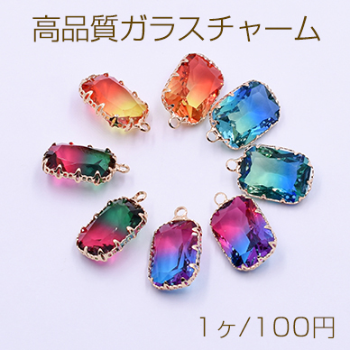 上質フレームガラスチャーム メタルフレームガラスチャーム 爪付きガラスチャーム グラデーションカラースクエア 1カン付き 14×23mm(1ヶ)