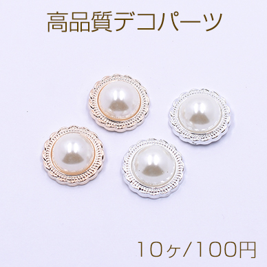 高品質デコパーツ アクリルパーツ 丸型C 18mm レース パール貼り【10ヶ】