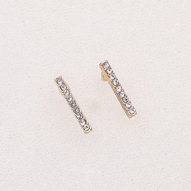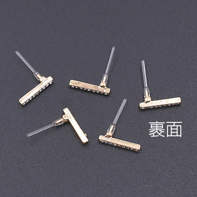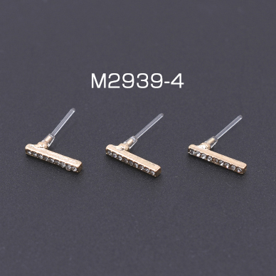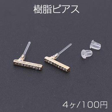 樹脂ピアス 長方形 石付き 2×12mm クリア/ゴールド【4ヶ】
