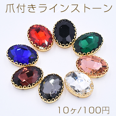 爪付きラインストーン オーバル 14×19mm ゴールド【10ヶ】