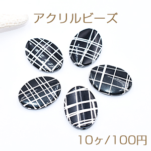アクリルビーズ オーバル 22×29mm ブラック/ホワイト【10ヶ】