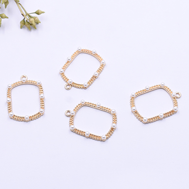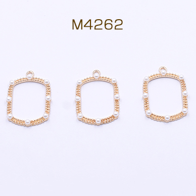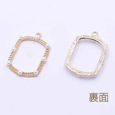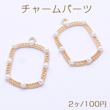 チャームパーツ 長方形 パール付き 1カン 24×34mm ゴールド【2ヶ】