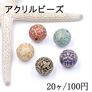 アクリルビーズ 模様入り丸玉 14mm アンティークゴールド【20ヶ】