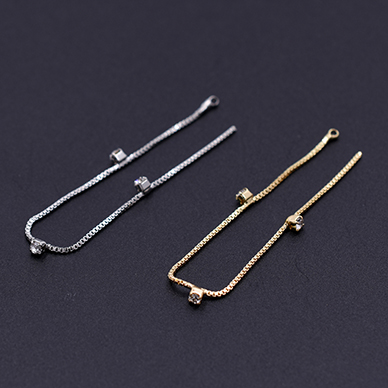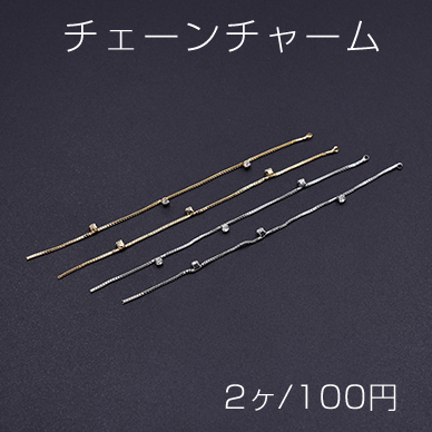 チェーンチャーム ボックスチェーン ストーン付き カン付き 10cm(2ヶ)