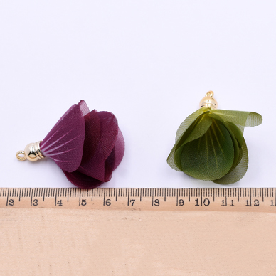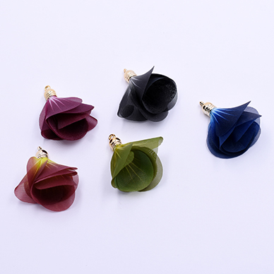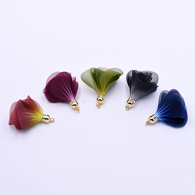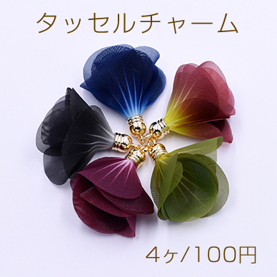 タッセルチャーム ガーゼお花 金具付き【4ヶ】