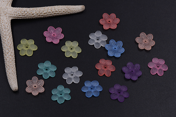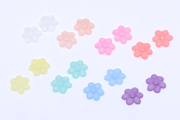 アクリルパーツ スクラブ フラワー 穴あり 13×15mm 全8色【30ヶ】