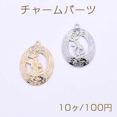 チャームパーツ オーバル 枝葉付き 1カン 22×30mm【10ヶ】