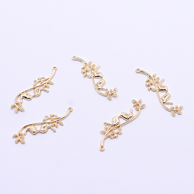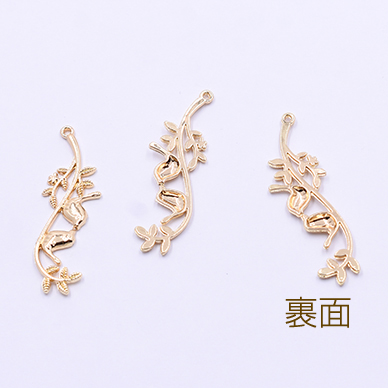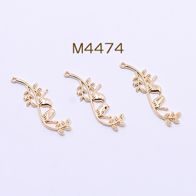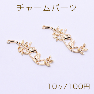 チャームパーツ 枝葉&鳥 1カン 14×44mm ゴールド【10ヶ】