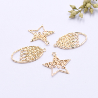 高品質チャームパーツ 透かし 星型/オーバル 石付き ゴールド【2ヶ】