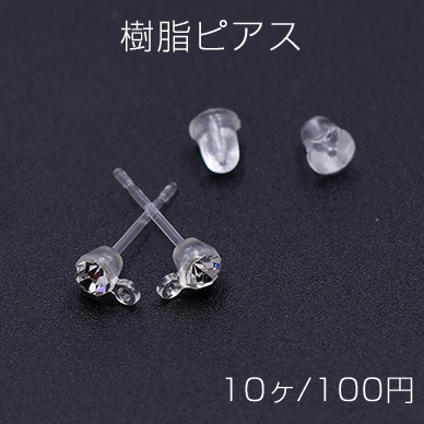 樹脂ピアス 石付き 3mm 1カン クリア/クリスタル【10ヶ】